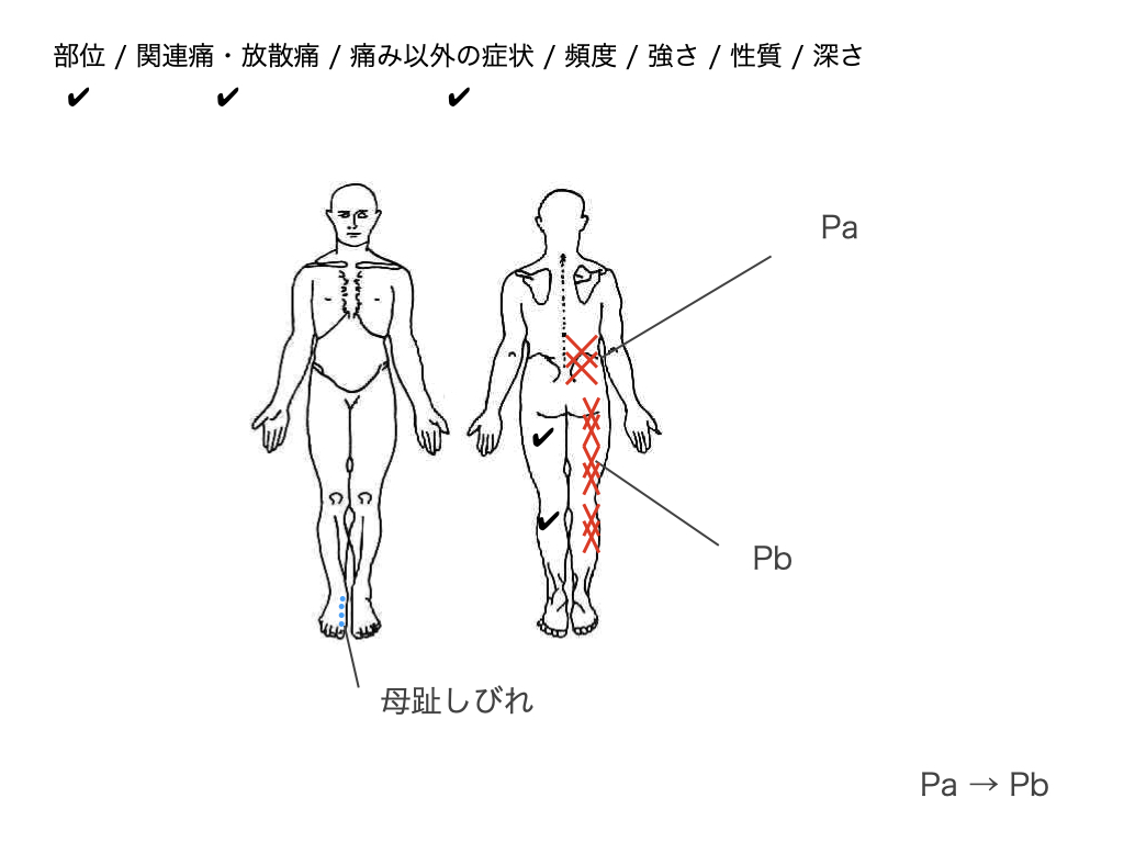 - 「お尻よりも下に痛みはありますか?」